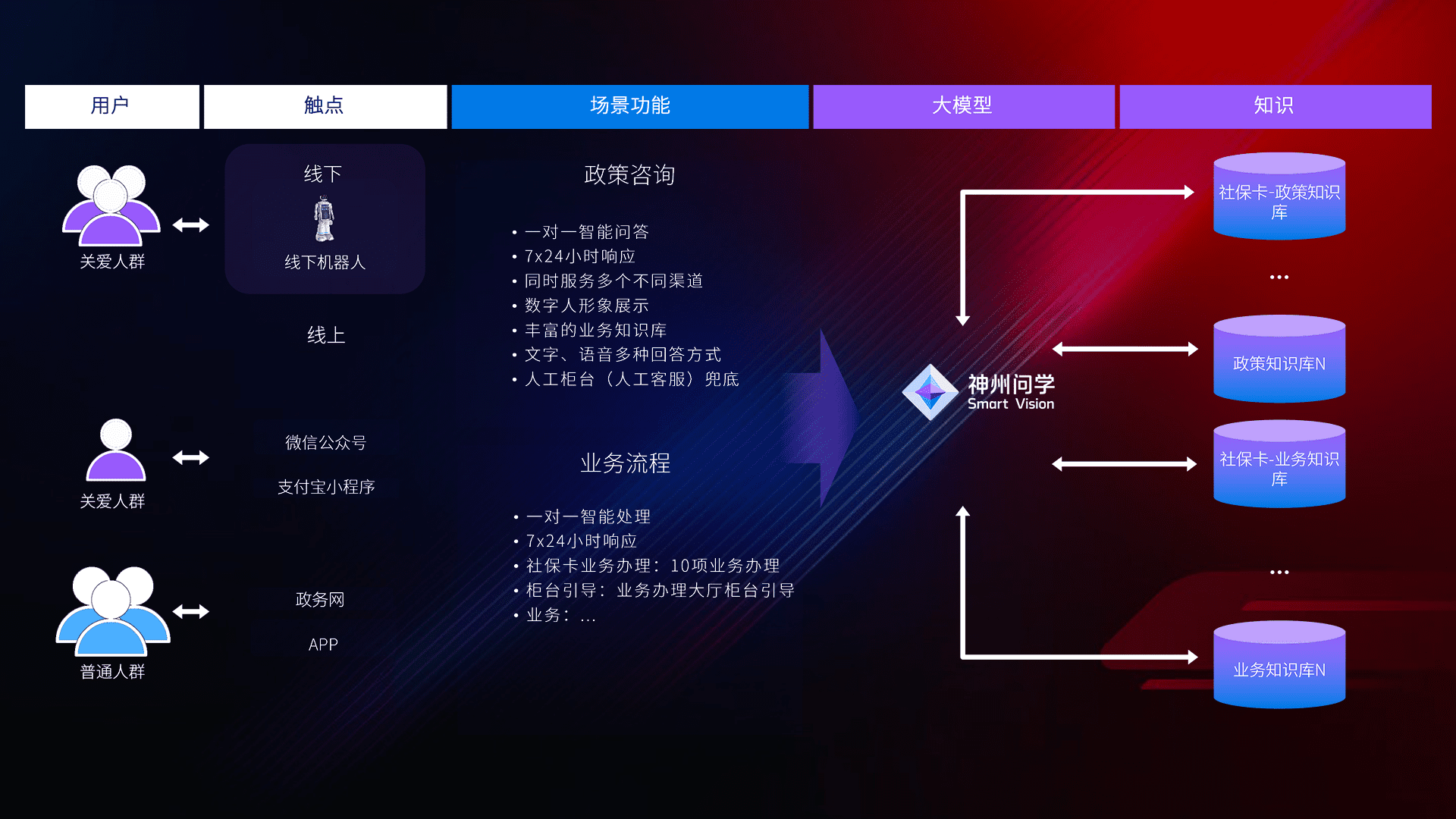 在服务大厅部署客服机器人,,,在线上应用和小程序配置客服数字人,,724小时为群众解答常规问题,,客服机器人无法处理的,,,,转现场人工处理。。